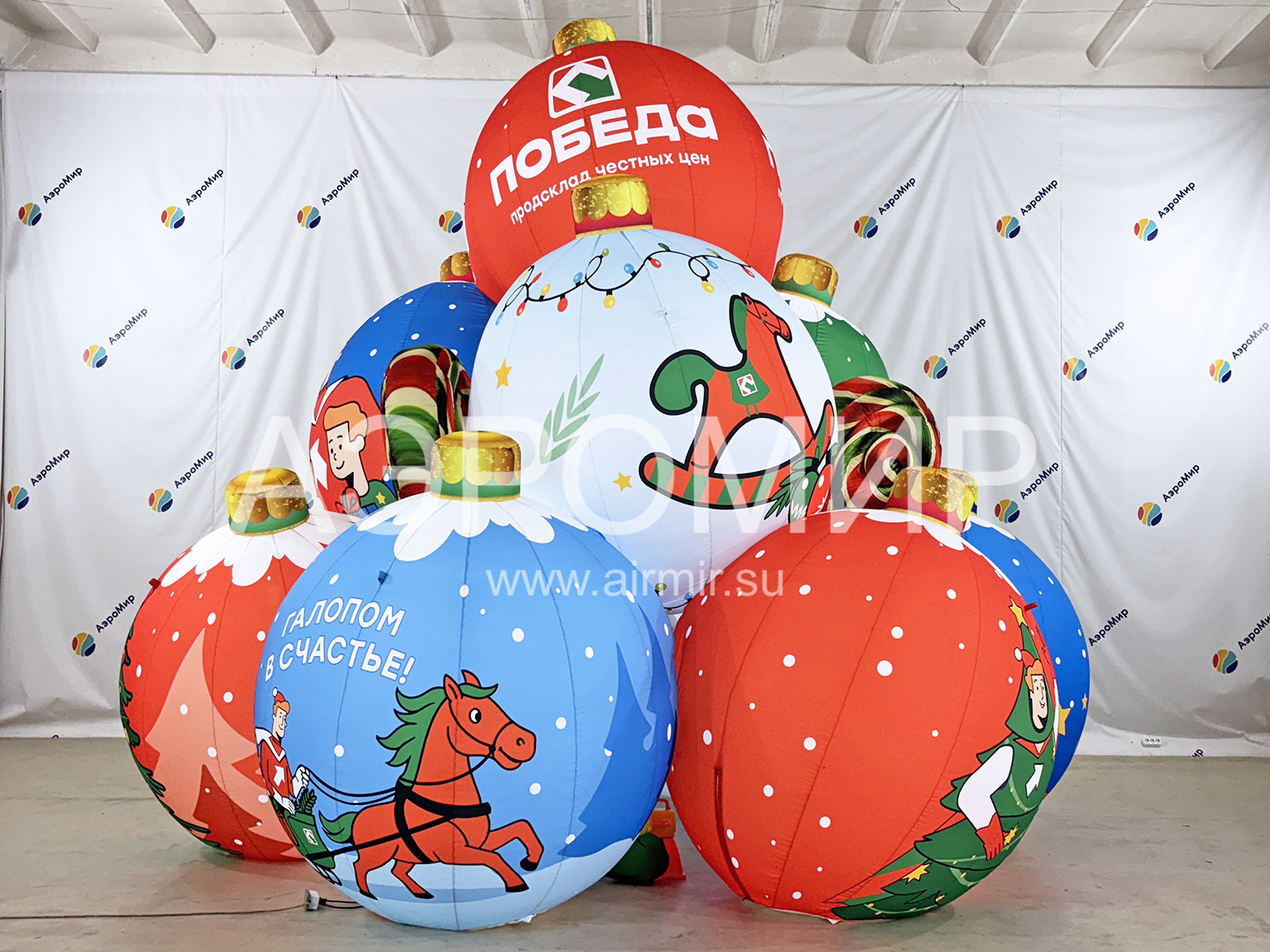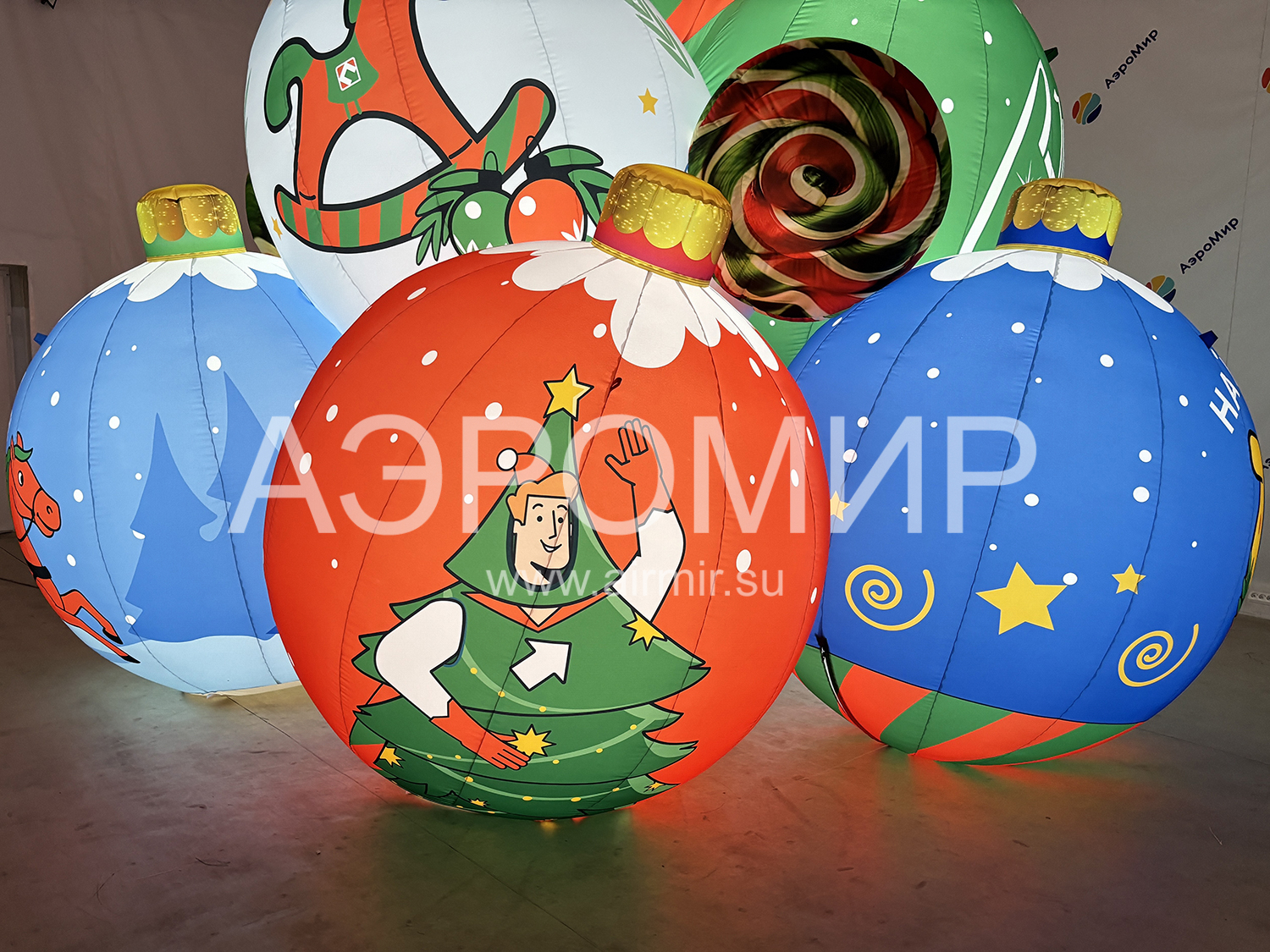 Создайте праздничное настроение с надувной композицией "Шары и леденцы"! Огромные ёлочные шары и полосатые леденцы, украшенные хвойными ветвями и сияющими гирляндами, станут ярким акцентом вашего мероприятия. Уникальные рисунки на шарах – зимние пейзажи, сказочные сюжеты и снежинки – приковывают взгляд. Превратите пространство в волшебную фотозону и подарите гостям незабываемые новогодние кадры!