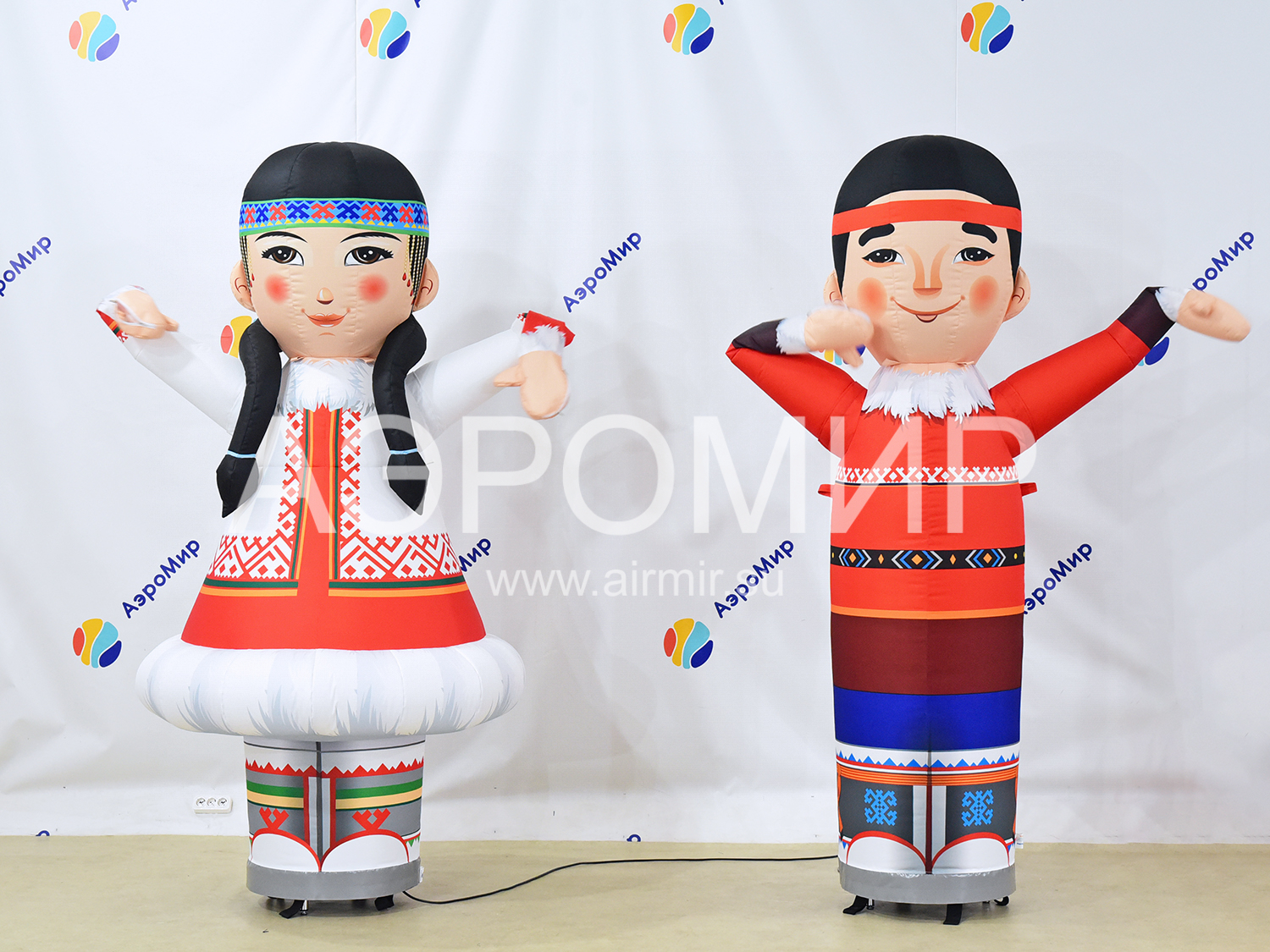 Установите напротив друг друга вентиляторы изделия, предварительно очистив площадку от мусора, колющих и режущих предметов. Выньте фигуру из чехла, разверните ее, держите аэромена в руках, чтобы не испачкать ткань.
