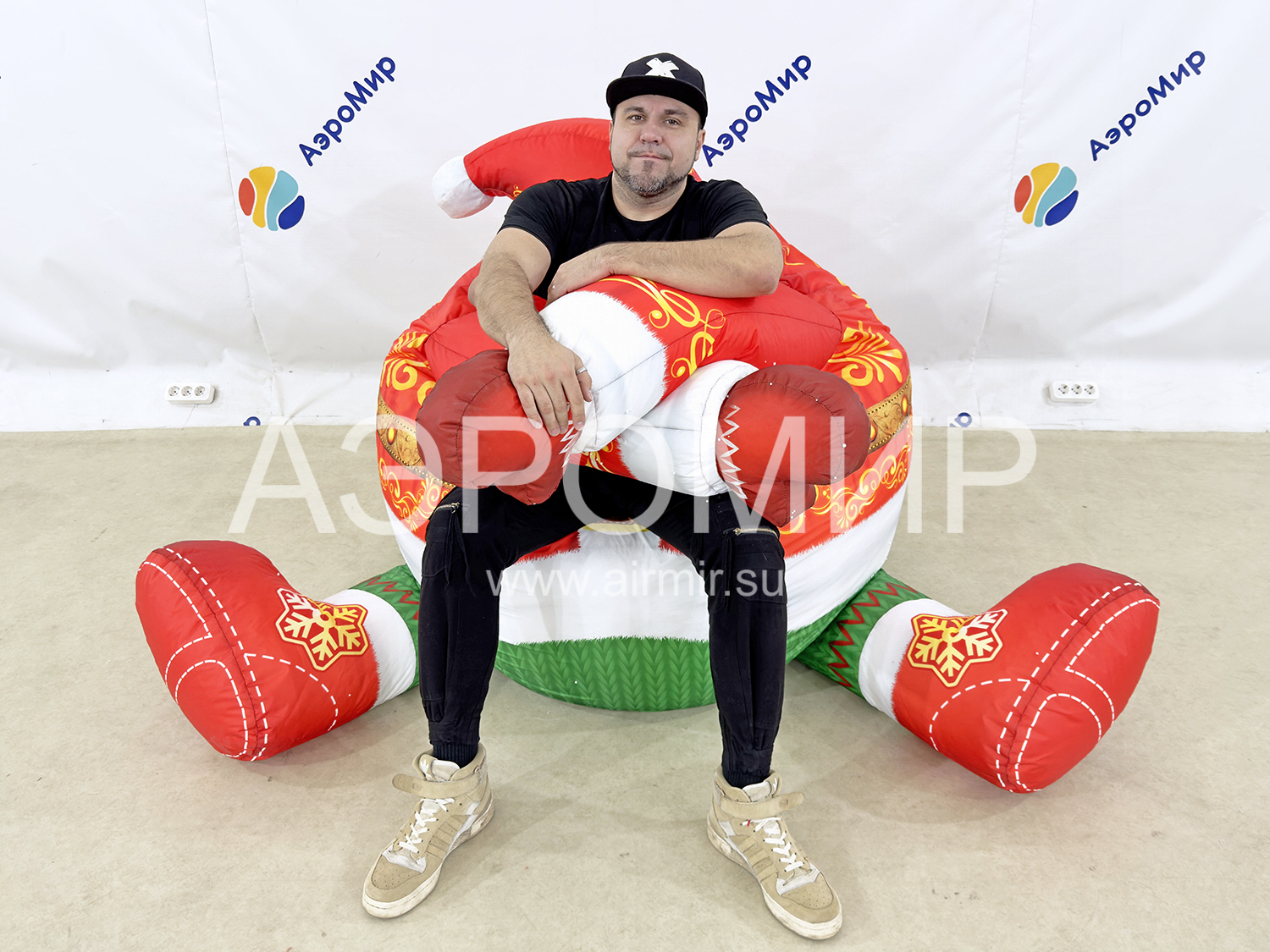 Мягкий уютный Дед мороз - кресло готов принять каждого с распростертыми объятиями. Как и к реальному дедушке, к нему можно усесться на «коленочки», сделав новогоднее памятное фото детей и взрослых. Конструкция фигуры позволяет ее использовать в качестве мягкого кресло-пуфа или праздничной фотозоны.