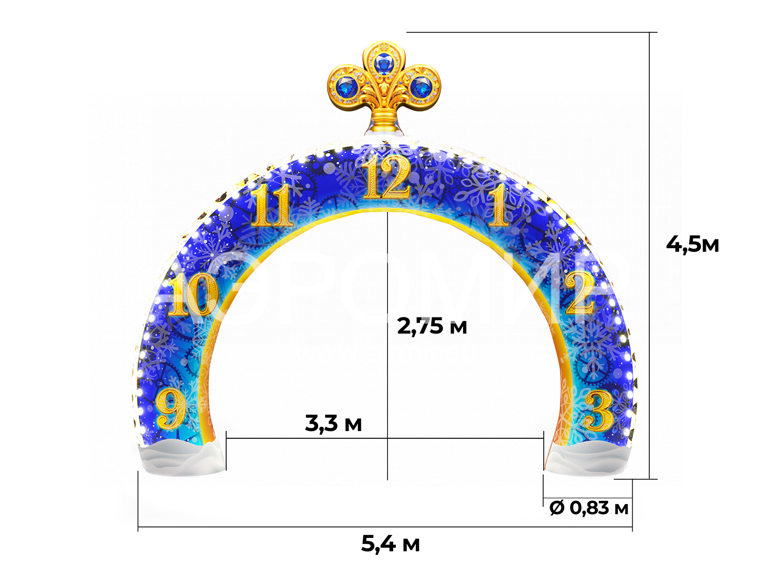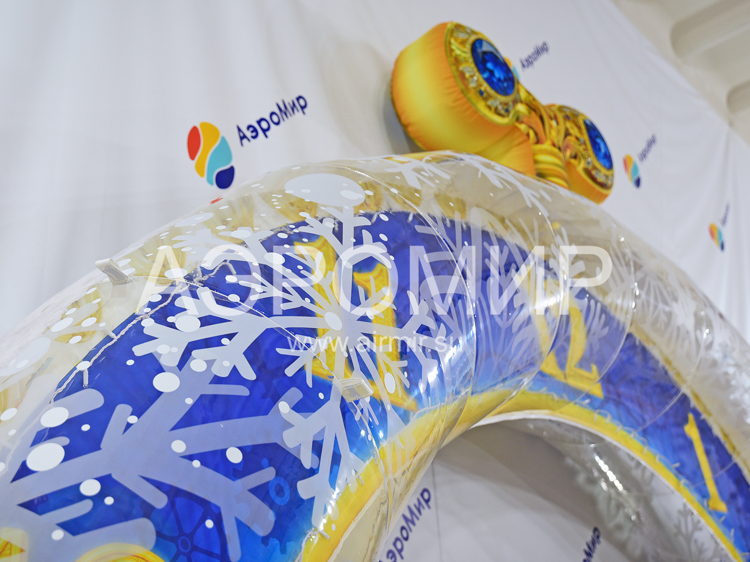 Прочный Оксфорд 300D с красочной фотопечатью новогодних часов добавит праздничного настроения. Опциональная подсветка сделает арку заметной даже ночью, привлекая внимание и создавая волшебство.