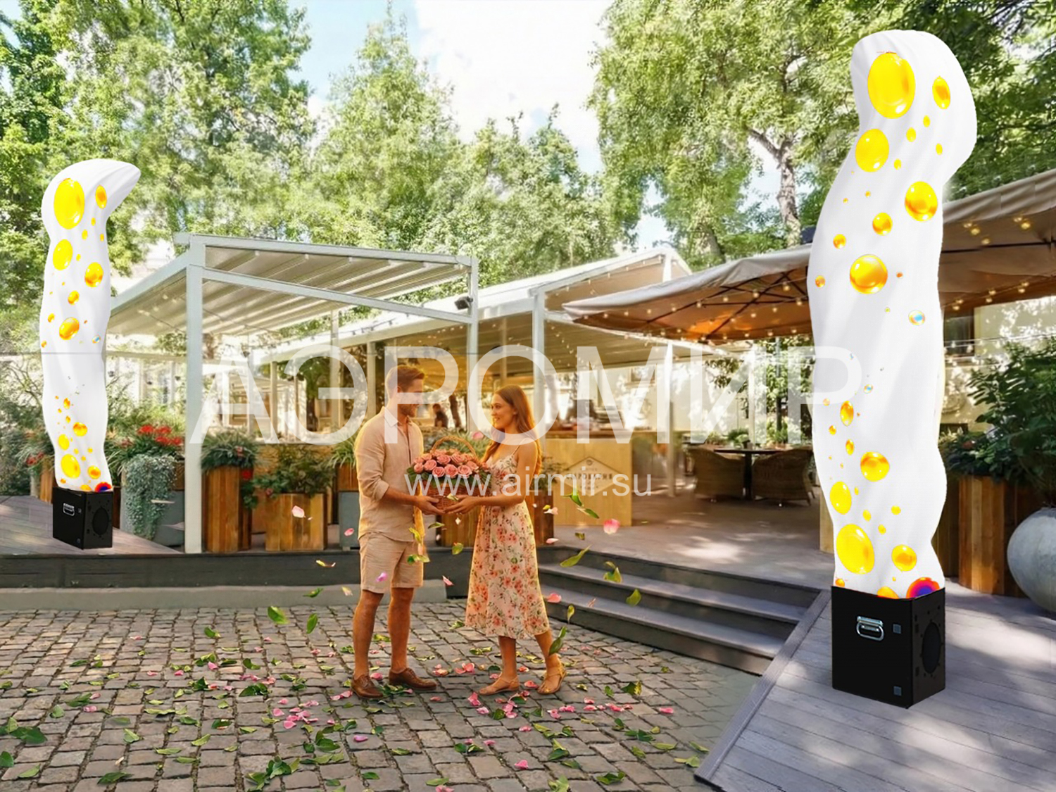 Аэрофонтаны — это самый эффектный на рынке динамических конструкций способ украсить и сделать заметным любое мероприятие и место. Спецэффекты аэрофонтана отлично заменяют традиционные декораций и оформления входной группы.