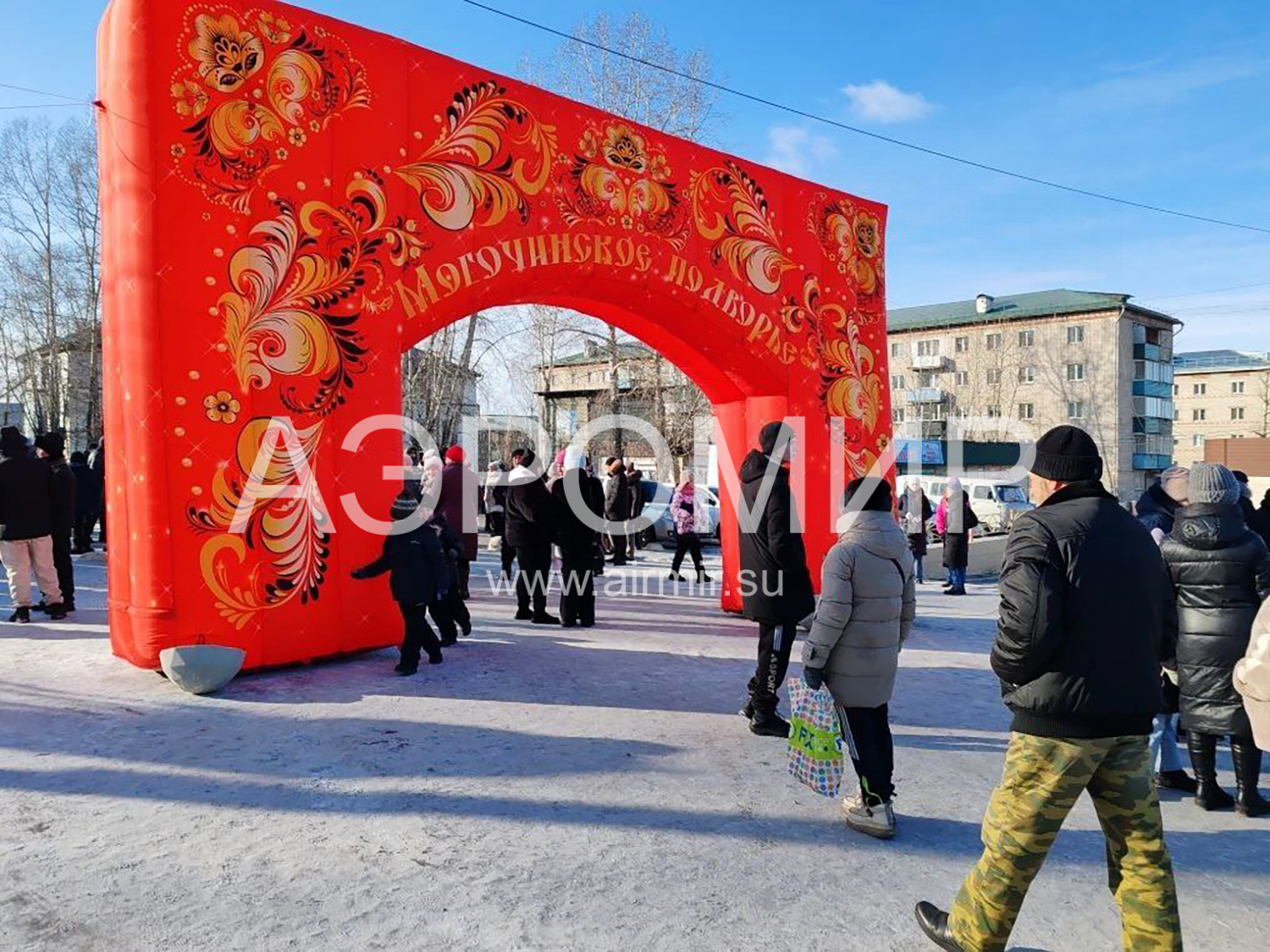 Прекрасная праздничная арка для оформления входной группы, места театральной постановки, праздничной торговли. Простая форма и невероятно красочная фотопечать с тематическими надписями и узорами. Легка и мобильна в установке и обслуживании. Изготовим в короткие сроки и доставим в любую точку. Гарантия производителя 1 год.