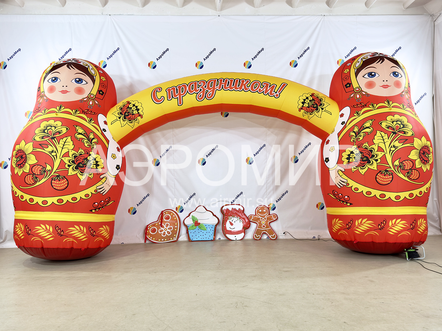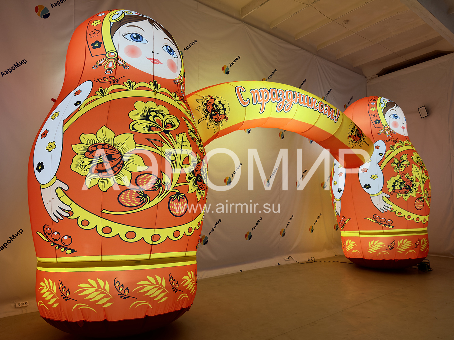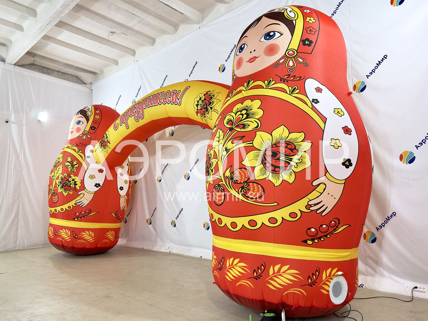 Что нужно, чтобы прогнать зиму... До упаду веселиться, кушать блины, активно участвовать в конкурсах и, конечно же, ярко встретить при входе на праздник! И это не шутка, ведь и вправду, говорят: «Встречают по одёжке, а провожают по уму»! Ярко оформит входную группу, приметно и издалека - арка с матрешками. Арка выполнена по канонам национального праздника Масленица, поэтому она станет визитной карточкой события.