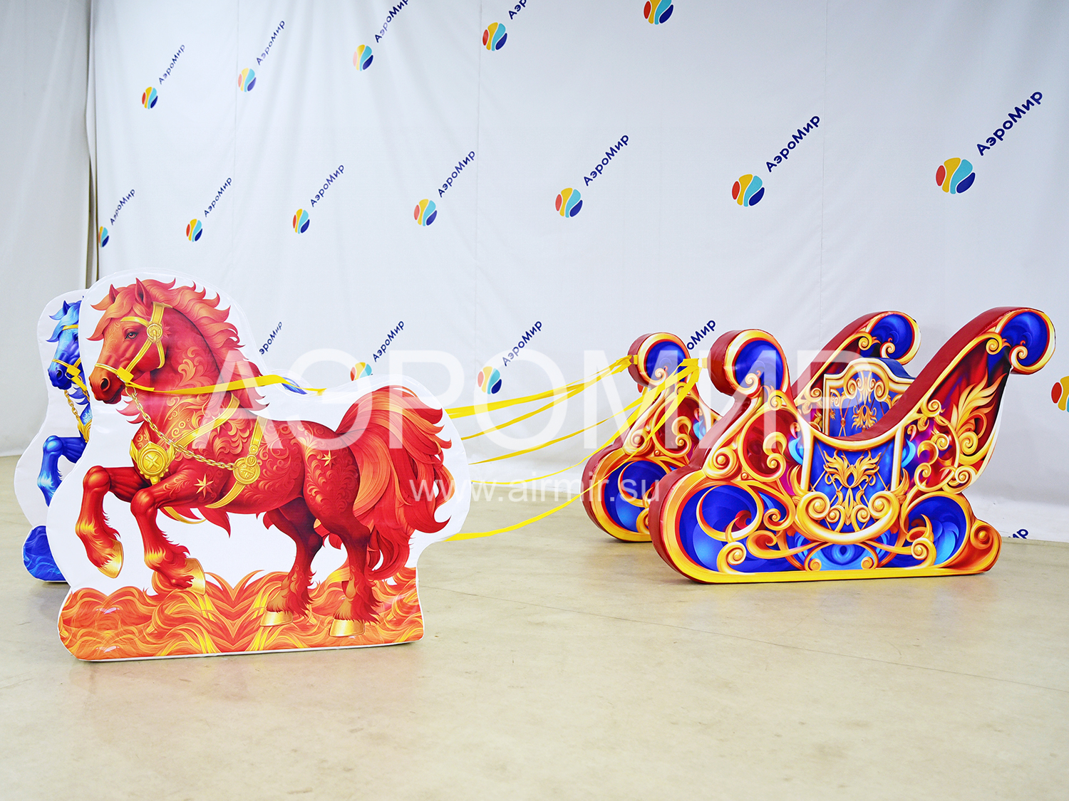 Красивая масленичная фотозона с санями и упряжкой лошадей. Невероятно яркая, привлекательная, для самых памятных фотографий. Можем нанести на изделие рекламную надпись или слоган, выполнить индивидуальное брендирование.