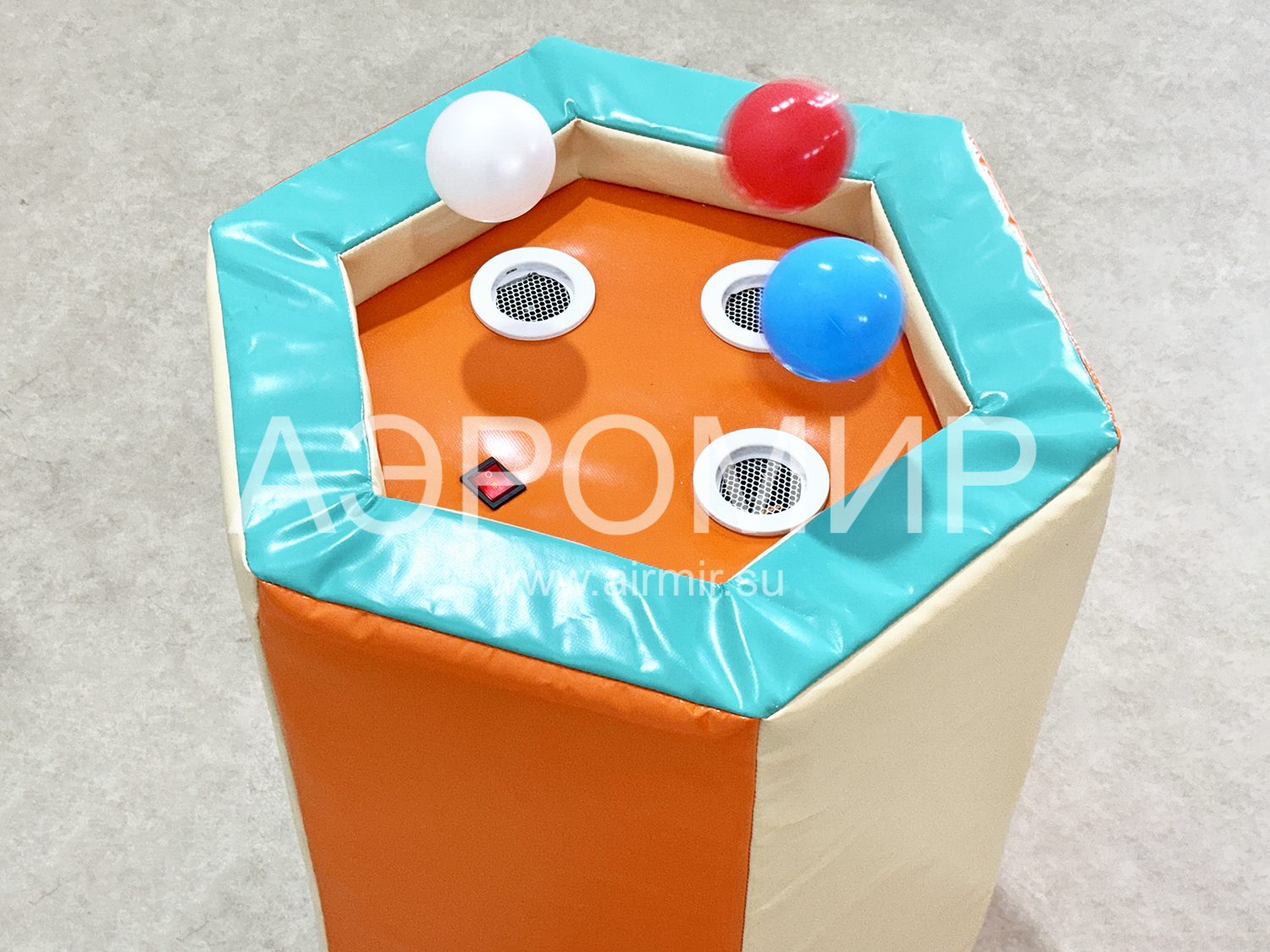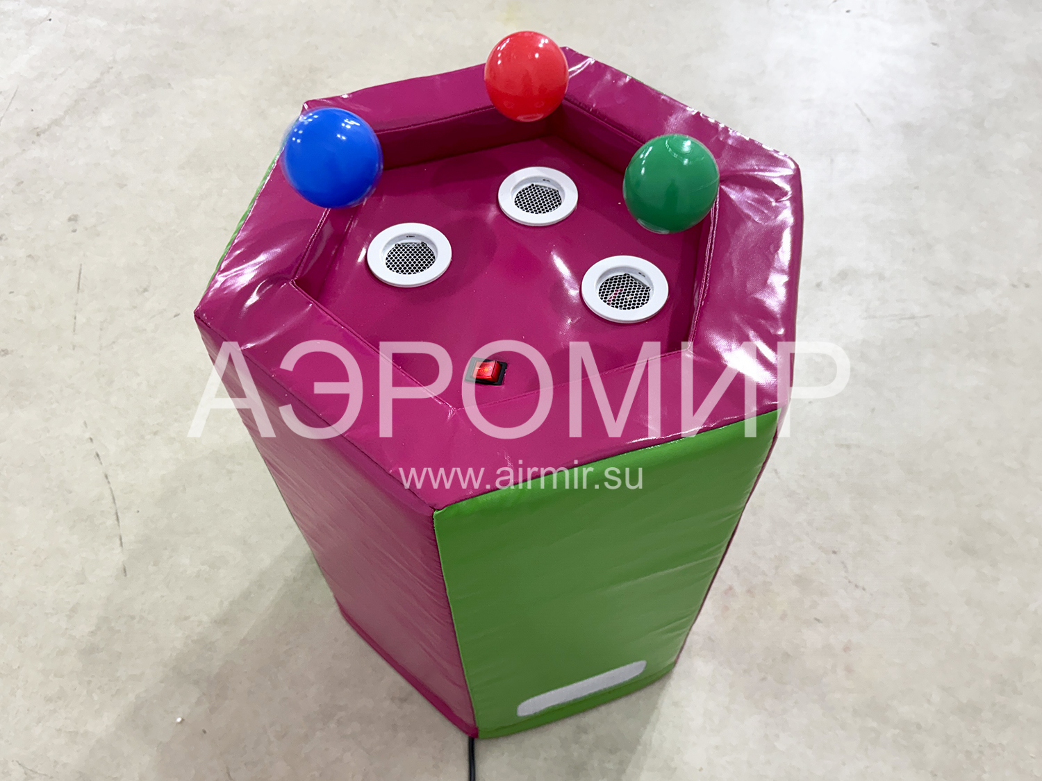 Фонтан для сухого бассейна сделает игру еще более интересной и увлекательной. Конструкция оснащена вентилятором, который поднимает шарики вверх. Изготовим в короткие сроки, доставим в любую точку.