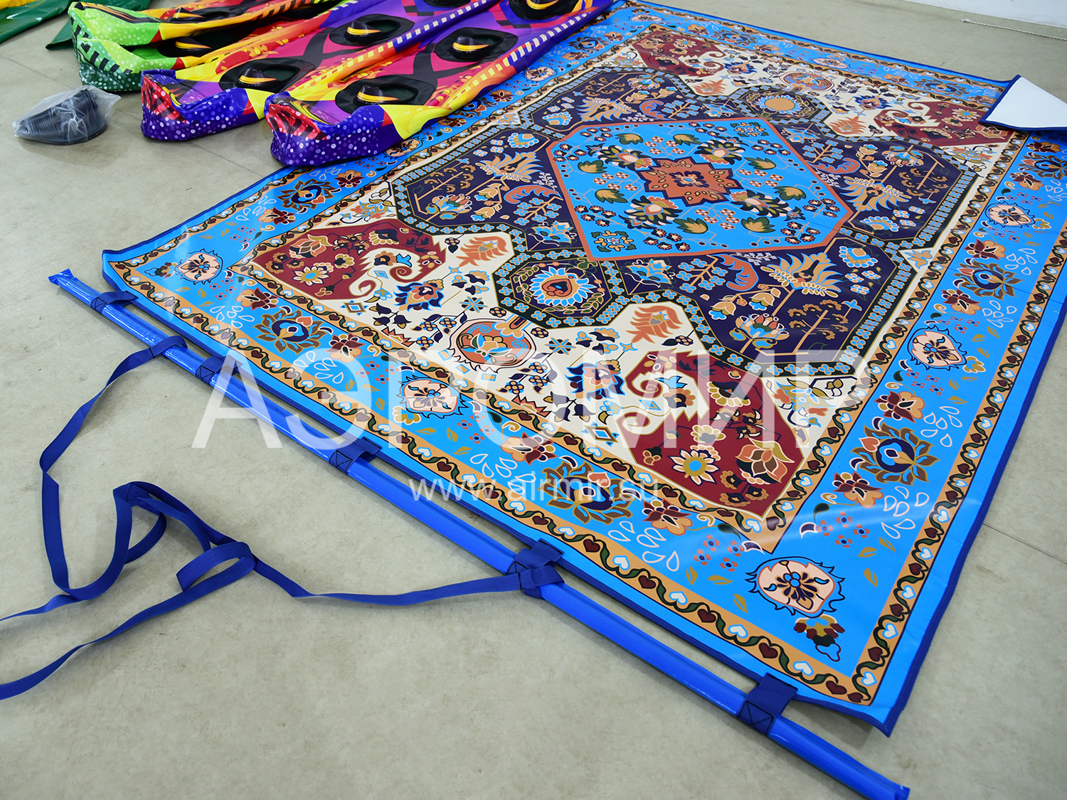 Это простой, но очень веселый аттракцион. Полотно с ярким сектором посередине и ручкой. Один из участников тянет за ручку, задача всех остальных - синхронно подпрыгивать, давая возможность «ковру» продвинуться вперед. Условия игры можно усложнить, поставив еще одну задачу: не приземляться за пределами центрального сектора. ВНИМАНИЕ! Указана цена за 1 штуку.
