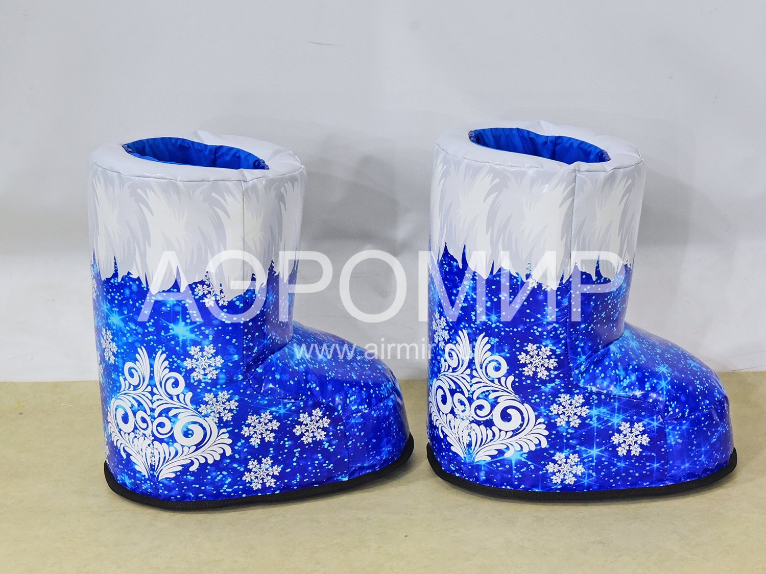 Тематический игровой реквизит в русско-народном стиле. Гигантские валенки прекрасно подойдут для веселых соревнований а потом отлично дополнят фотозону. Изготовлены из прочного ПВХ  и поролона, нанесена качественная полноцветная печать.