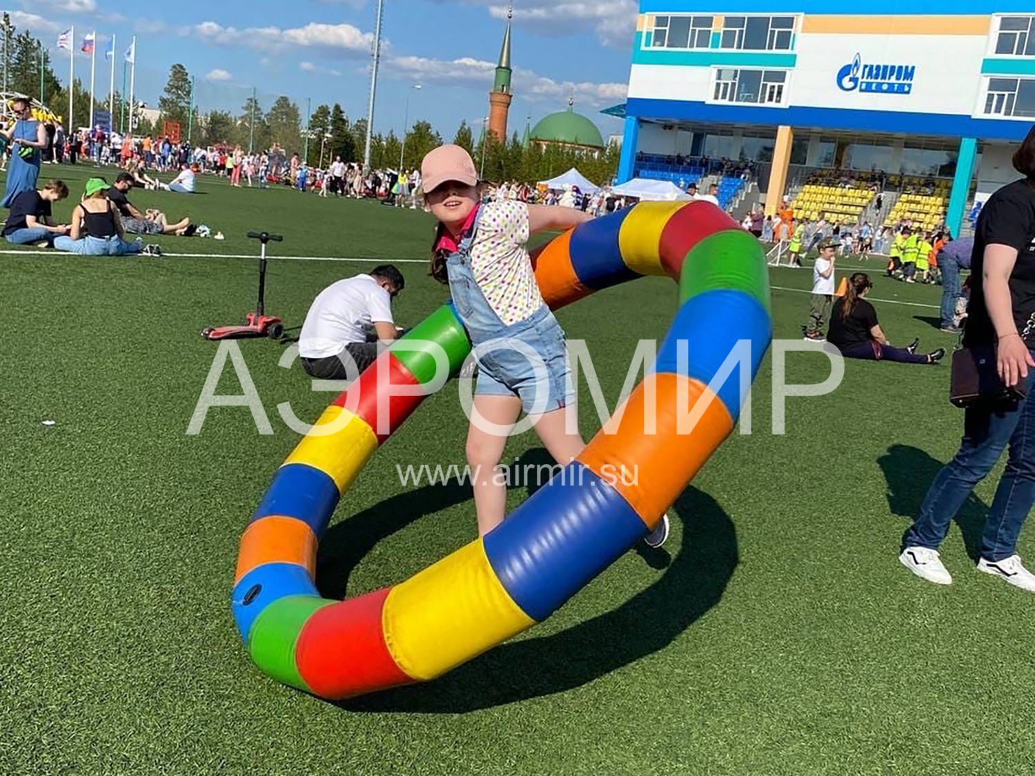 Отличный вариант классического обруча. Но с нашим гигантским обручем игры, соревнования и эстафеты станут еще веселее. Может быть использован в целях тимбилдинга, на городских гуляниях и праздниках. Суть игры проста- кто дольше прокрутит обруч на талии, или в любых других вариантах как и с обычным обручем. Легкий материал, яркий и прочный.