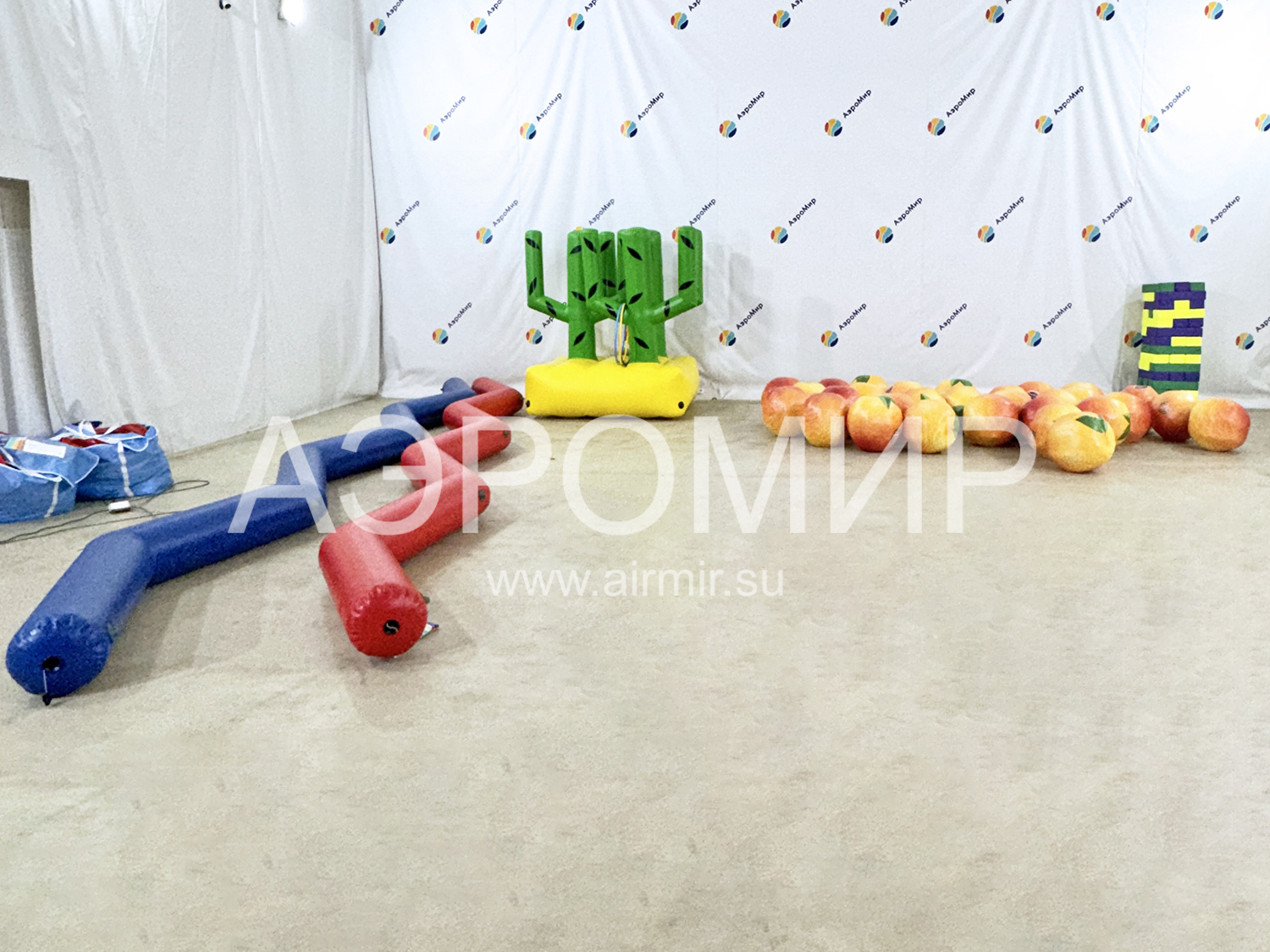 Необходимо двигаясь по надувному зигзагу, достичь его конца не упав и за минимальное время.
